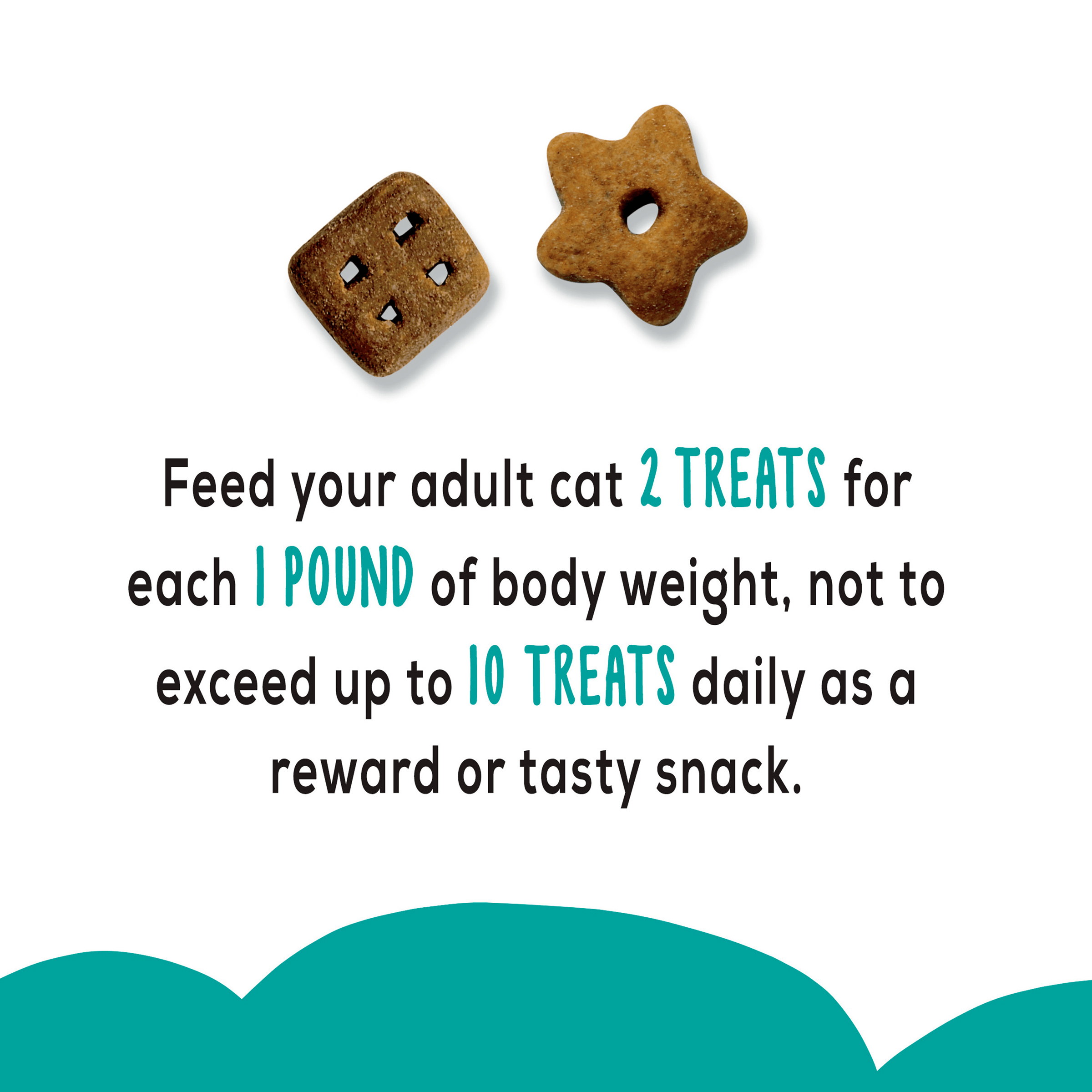 | Feeding Tip | Feed your adult cat 2 treats for each 1 pound of body weight, not to exceed up to 10 treats daily as a reward or tasty snack. Purina Friskies Party Mix Meow Luau Crunch provides 100% complete and balanced nutrition for adult cats so that it will not dilute the nutritional value of your cat’s regular maintenance diet. To maintain your cat’s proper weight, reduce the amount of cat food offered proportionately to the amount of snacks you feed your cat. Calorie Content (calculated): 4016 kcal/kg |