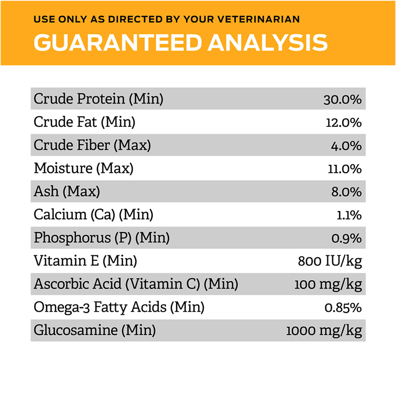 Purina Pro Plan Veterinary Diets JM Joint Mobility Canine Formula contains an innovative nutritional blend that includes a high level of long-chain omega-3 fatty acids and glucosamine to help support joint health. The science behind our therapeutic diets represents a collaboration between Purina nutritionists, researchers and veterinarians.